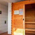There is a full kitchen including a refrigerator, an oven, and kitchenware. A sauna can be enjoyed by guests on site.